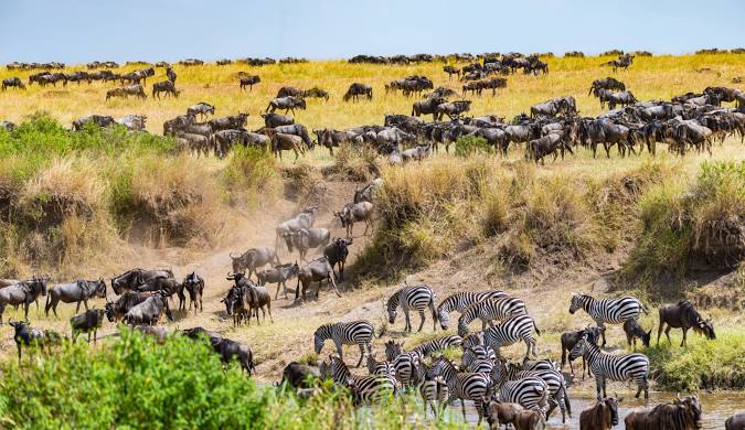 Le Kenya est célèbre pour ses parcs nationaux et réserves de faune, qui sont parmi les meilleurs au monde pour les safaris. Le Masai Mara, l’une des réserves les plus emblématiques, est le lieu idéal pour observer la fameuse migration des gnous, un spectacle naturel époustouflant. Dans le parc national Amboseli, situé au pied du mont Kilimandjaro, vous pourrez apercevoir des éléphants majestueux dans un cadre spectaculaire, avec le plus haut sommet d’Afrique en toile de fond. Le parc national de Tsavo, le plus grand du pays, est également un lieu incontournable, connu pour sa faune abondante et ses paysages variés allant des savanes aux montagnes volcaniques.