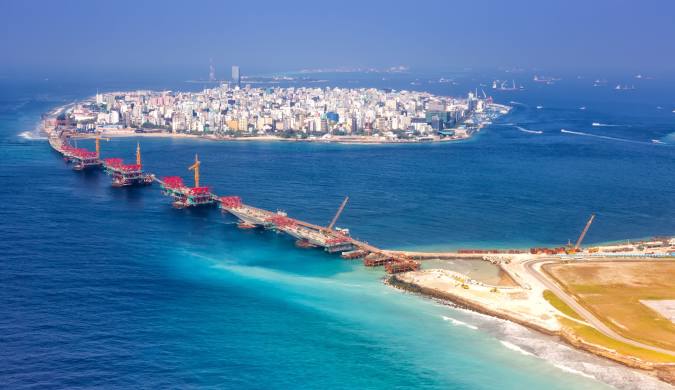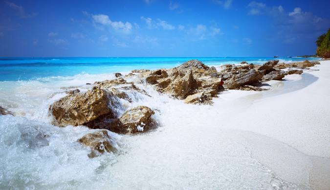Les îles Maldives sont un archipel situé dans l’océan Indien, au sud-ouest du sous-continent indien, près du Sri Lanka. Composé de 1 192 îles réparties sur 26 atolls naturels, l’archipel s’étend sur environ 820 kilomètres du nord au sud et 130 kilomètres d’est en ouest, couvrant une superficie totale d’environ 90 000 km², dont seule une petite partie est constituée de terres émergées.